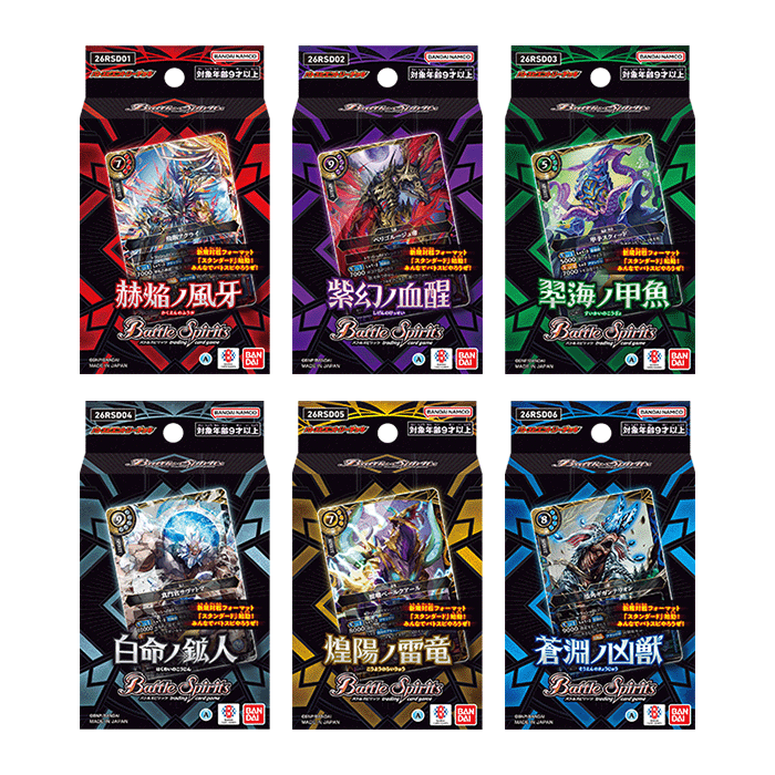 ![[26RSD01-06]Battle Spirits入門牌組 赫焔ノ風牙/紫幻ノ血醒/翆海ノ甲魚白命ノ鉱人/煌陽ノ雷竜/蒼淵ノ凶獣](/renewal/images/product/starter/26rsd01-06/bg_mv.jpg)